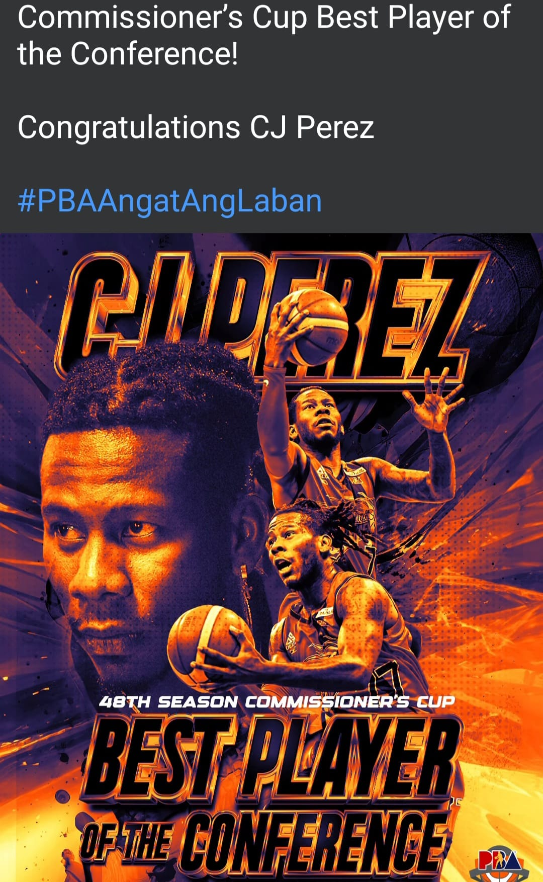 CJ PEREZ CONGRATULATORY POST Feb 9 Written By Office of Knowledge Information and Network System Batang Panpacific CJ Perez awared as the Commissioner's Cup Best Player of the Conference February 09, 2024 Office of Knowledge Information and Network System